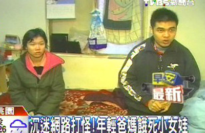 ... 보도에 따르면 이 부부는 남편의 매달 수입(한화 약 68만원) 중 대부분을 온라인게임 아이템을 구매하거나 PC방 이용료로 사용한 것으로 알려졌다. 또한 분유 값을 데는 것도 아까워 딸에게 미음이나 우유만 먹여왔으며 이 또한 불규칙적인 것으로 알려져 더욱 충격을 주고 있다.