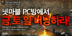 ... 먼저 ‘스페셜포스2’는 9일부터 4월 1일까지 ‘금,토,일을 버닝하라’ 이벤트를 진행하고, 주말 동안 넷마블 PC방에서 누적된 플레이 시간에 따라, 신규 주무기와 경험치 증가, 컬러코드명 등 캐쉬아이템을 지급한다. 또 ‘건즈온라인’, ‘SD건담 캡슐파이터’, ‘그랜드체이스’