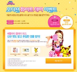 ... 이 의상 아이템은 게임 내에서 커플을 이루고 있는 유저들만 구매 가능하고, 구매 유저 중 20명에게는 추첨을 통해 2만 캐시를 지급할 예정이다. 또한 오디션2의 커플에게 선물을 증정하는 이벤트도 진행된다. 이벤트 기간 내 커플을 맺은 유저들이 게임 플레이 등으로 함께 커플