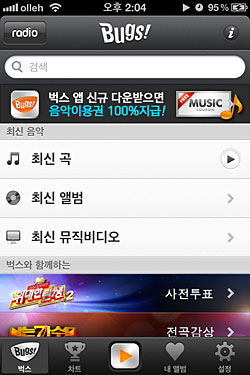 ... 벅스 앱은 지난해 5월 2. 0 업데이트를 통해 속도와 사용자 환경(UI) 등을 대폭 개선한 바 있다. 이번 업데이트에서는 ‘벅스라디오’, 페이스북과의 서비스 연동, EQ 설정 등이 새롭게 추가됐다