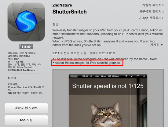 ...2. 1이 등록됐다. 특이한 점은 아이패드용 레티나 이미지를 지원한다는 내용이 추가된 것