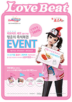 ... 이번 이벤트는 이벤트 기간 중 죠스떡볶이를 방문해 ‘러브비트 세트’를 주문하는 방식으로 참가할 수 있고, 상품으로 한정판 ‘러빗 손거울’과 쇼핑 지원금 등을 받을 수 있다. 또, 오는 16일과 17일에는 러브비트의 ‘얼짱 도우미’가 매장에 직접 방문하는 현장 이벤트도 진행된