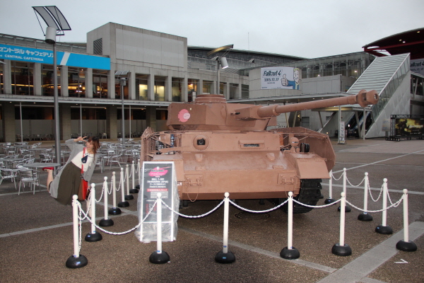 ...전시된 전차는 독일 5티어 '4호전차'로 애니메이션에서는 주인공팀인 아귀팀이 탑승한다. 차체 측면에 오아라이 학원(주인공 소속 학교)의 마크와 포대에 그려진 아귀 그림은 애니메이션의 고증을 그대로 따랐다. 전시된 4호전차는 75mm장신포와 쉬르첸(궤도방어용 스커트)을 장착한 상태
