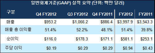 ... 엔비디아에 따르면 연간 주당 이익은 미국 일반회계기준(GAAP)으로 0. 94달러를 기록, 지난해 0. 43달러에 비해 118