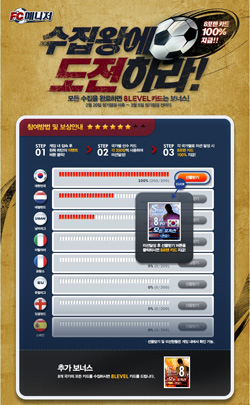 ... 3월 5일까지 2주 동안 총 8종의 국가별 선수 카드를 각각 200장씩 사용한 감독들에게 한 국가당 8포텐의 선수 카드를 보상으로 주며, 8개 국가의 선수 카드를 모두 200장씩 사용하면 9포텐의 8레벨 선수 카드를 보상으로 제공 받을 수 있다. 이와 함께 'FC매니저' 아