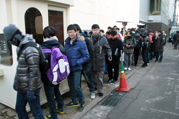... 이날 공식행사는 오전 10시부터 시작되지만 PS비타 시연과 리셉션 등 사전행사에 참여하기 위해 많은 인파가 이른 새벽부터 몰려들었다. ▲ 이른 시간부터 행사장에 입장하기 위해 많은 사람이 줄을 섰다 ▲ 8시가 되자 입장이시작됐고, 입장 순서대로 PS비타 구매순서가 정해진다