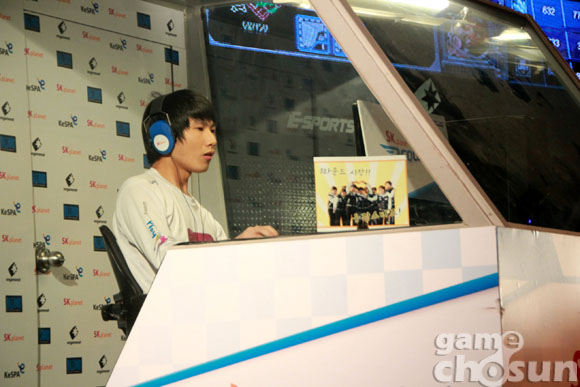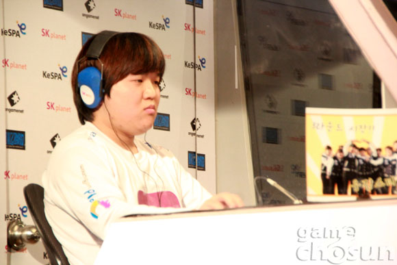 ... 초반 빠른 다크템플러로 날카로운 공격을 보인 김유진은 변형태의 벙커와 완벽한 심시티에 막혀 불리한 출발을 보였지만 이내 중반 아비터와 하이템플러 스톰으로 다수의 SCV를 잡아내는 등 역전승을 따냈다. ▲ 웅진 김유진 ▲ 웅진 덕아웃, 개그맨 정형돈과 싱크로율 10