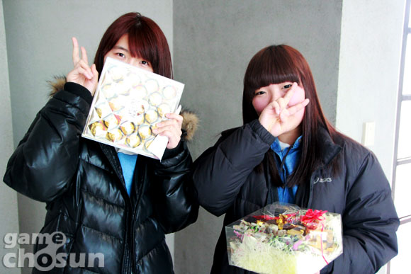 ...사랑하는 연인들이 초콜렛을 주고 받으며 사랑을 확인하는 발렌타인데이가 2일 앞으로 다가왔다. 프로게이머들을 응원하는 여성팬들은손수 만든초콜렛을 들고 12일 용산 e스포츠 상설경기장에서 열린 프로리그현장을 찾았다. ▲ 이현지(좌)씨, "CJ 조병세 선수 팬이예요