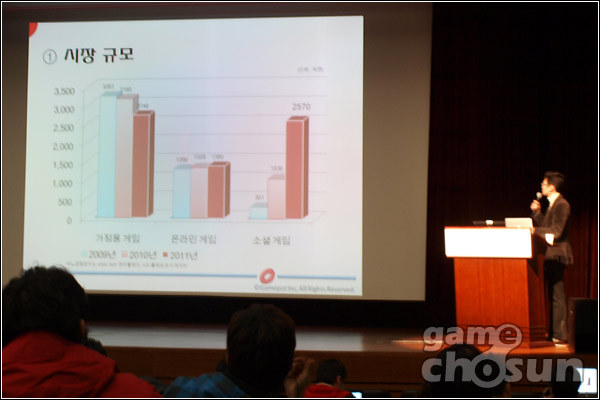 ... 일본 게임시장 현황 발표는 일본온라인게임협회 우에다 슈헤이 이사장이 맡았다. 그는 온라인게임사 게임팟의 대표이기도 하다. ▶일본 게임 시장 규모, 콘솔 ↓ 온라인 • 소셜 ↑ 2011년 일본 게임시장의 가장 눈에 띄는 변화는'콘솔 게임시장의 비중 감소'로 북미와 함께 콘