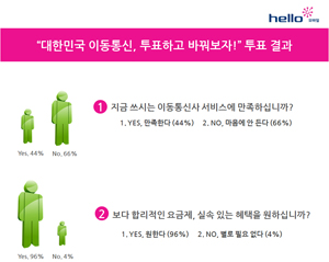 ...합리적인 이동통신요금을 강조하며 지난 1월 14일부터 2월 4일 까지 온라인에서 진행된 CJ헬로비전 헬로모바일의 '대한민국 통신요금 내리기 대 국민 투표 캠페인'이 네티즌들의 높은 참여율을 기록하며 성황리에 종료됐다. 투표가 종료된 4일, 네티즌 투표 총 참여자 수는 8,309