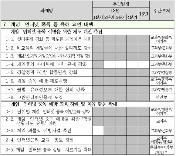 ...7%가 넘었고 교육적 시각에서 심의 규제 및 유해성을 자율 자정하려는 노력이 부족했다"며 "가상현실 속 잔혹성이 학생들의 폭력성을 부추기지 않고 정신건강을 해치지 않도록 관련 제도를 개선하고 예방교육 및 치유활동을 강화해 나갈 예정이다"고 밝혔다. 이 대책은▲ 청소년에 대한 게
