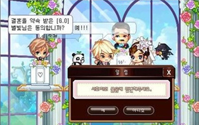 ... 이번에 업데이트된 결혼 시스템은 이용자가 다른 이용자와 커플을 맺은 뒤 결혼반지를 구입해 프로포즈를 하고, 웨딩홀에서 결혼식을 진행하는 방식으로 이뤄진다. 커플 애정도가 200 이상인 커플만 결혼할 수 있으나, 캐쉬 아이템을 사용하면 애정도와 상관없이 결혼이 가능하다. 유
