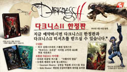 ...에이치투인터렉티브는 디지털 익스트림즈가 제작한 다크니스2의 예약 판매를 실시한다고 1일 밝혔다. 금일(1일)부터 오는 8일까지 교보 핫트랙스 및 온라인 쇼핑몰을 통해 진행되는 이번 예약 판매를 통해 게임을 구입하는 사람들에게는 다크니스2 티셔츠와 함께 마크 실베스트리의 스페셜