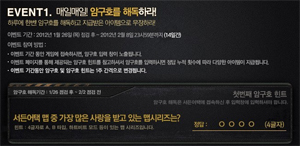 ...넥슨이 서비스하고 게임하이가 개발한 FPS(1인칭 슈팅)게임 '서든어택'에 '암구호 해독' 이벤트가 진행 중이다. 넥슨은 오는 2월 8일까지 게임에 접속하면 암구호 입력 창이 뜨고 정답을 맞추면 다양한 보상아이템이 제공되는 이벤트를 실시했다. 암구호는 이벤트 페이지를 통해