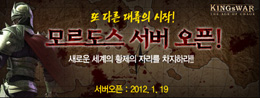 ... 회사 측에 따르면이번에 오픈하는 2서버 모르도스는 '킹스워'가 정식 서비스를 시작한 지 1개월 만에 선보이는 신규 서버로, 기존1서버의 누적회원이 약 10만명, 재 접속률이 약 80%를 기록하고 있으며, 유저들의 지속적인 서버 증설 요청으로 2서버를 추가하게 됐다. 이와 더불