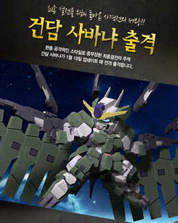 ... 우선, 이번 업데이트에는 S랭크 유닛 '건담 사바냐'가 업데이트된다. 건담 사바냐는대규모 전투에 특화된 건담으로 본체에 다수의 미사일 발사구를 내장하고 있어 다수의 적을 한번에 공격할 수 있다. 이 유닛은 걸어 다니는 무기고라 불려질 만큼 사격전에 전문화된 무기들을 보유해 측
