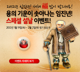 ... 재물운은 12분간 드랍율을 2배로 올려주며 성취운은 12분간 경험치 2배 획득, 건강운은 체력과 CP를 100% 회복시켜준다. 이벤트 기간 동안 고도 브룬넨슈티그의 이벤트 도우미 NPC는 ‘떡국’과 ‘만두국’을 판매한다. 떡국은 최종 대미지를 30% 증가시켜주며 만두국은 체