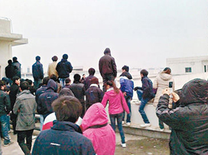 ... 이 보도에 따르면 회사 측이 임금 인상안을 거절하자 근로자들이 집단으로 자살을 하겠다며회사 측을 협박한 것. 당시 인명피해는 없었으나 자살 협박 시위를 하는 사진과 동영상이 각종 커뮤니티를 통해 삽시간으로 중국 전역으로 퍼지면서 큰 우려를 샀다. 폭스콘 측은 현재 Xb