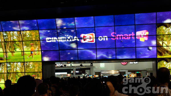 ... 또, 부스 입구에서는 갤럭시노트 아틀리에를 마련해 관람객들의 캐리커처를 그려 티셔츠에 프린트하는 이벤트를 진행 중이다. 이 이벤트에는 많은 관람객이 몰려 한참을 기다려야 참여할 수 있을 만큼 인기몰이에 성공하고 있다. LG는 55인치 OLED 3D TV와 84인치 3D T