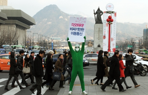... 이들은 유동인구가 많은 명동, 광화문, 강남, 신촌, 삼성역 일대에서 동시에 발견되고 있으며, 부담스러운 국내 이동통신요금제에 대한 개선을 촉구하고 있다. 이들은 ‘기존의 높은 통신요금의 개선을 촉구하고자 1인 시위를 진행하게 되었다’라고 말하며, ‘우리의 높은 통신
