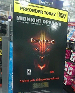 ... 이판매대는 해당지점 총지배인의 지시로 설치됐고, 디아블로3의 출시일을 2월1일로 설정했다. 이를 본게이머들은 블리자드가 기존에 밝힌 게임 출시 일정이 '2012년 초'라는 점에서 "판매대에 표시된 일정이 블리자드의 깜짝 출시 발표 아니냐"는 의견을 제기하기도 했다. 하지만