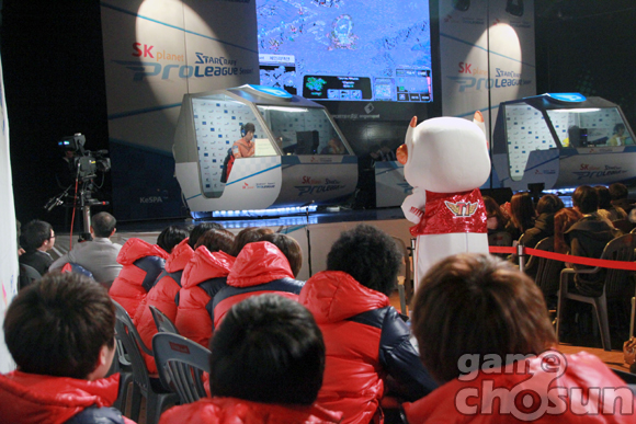 ... 첫 주자로 나선 정명훈이 CJ의 선봉 진영화를 잡아내며 좋은 출발을 보인 SKT는 2세트에 출전한 김택용까지 김정우를 상대로 완승을 거두며 일찌감치 2대0 매치스코어를 만들어냈다. 3세트에 나선 이승석이 CJ의 주장 신상문을 상대로 히드라 폭탄드롭을 시도하며 승기를 잡았지만