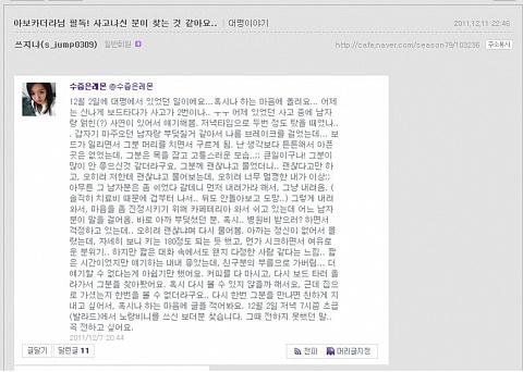 ... 스키장에서 자신과 우연히 부딪혔던 남자를 찾고 싶다는 여자의 글이 ‘와글’에 올라온 것은 지난해 12월. 네티즌들은 각종 보드 동호회와 와글을 오가며 사고날짜, 장소, 외모, 옷차림 등의 정보를 토대로 약 3주만에 사연의 주인공을 찾아냈다. 다수 네티즌들의 노력으로