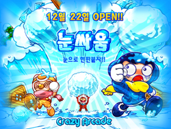 ... 특히 상대방에게 눈 뭉치로 3번 공격에 성공하면 눈사람이 돼 움직일 수 없게 되고, 눈사람이 된 캐릭터를 아군이 터치하면 상태가 회복되지만 상대편이 밀면 굴러가게 된다. 또한 거대한 눈덩이로 범위 공격을 할 수 있는 왕눈 아이템과 눈 뭉치를 연속으로 던질 수 있는 연타기능이