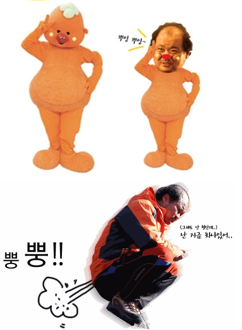 ... 이 게시물에는 캐릭터 뿡뿡이와 케이블TV OCN 드라마 ‘특수사건전담반 TEN’에 출연중인 김상호를 비교 합성해 놓은 모습이 담겨있다. 특히 형광 주황색 점퍼를 입고 있는 김상호의 모습이 뿡뿡이와 매우 흡사한 것. 또한 쭈그리고 앉은 김상호의 엉덩이 부분에 방귀 모양