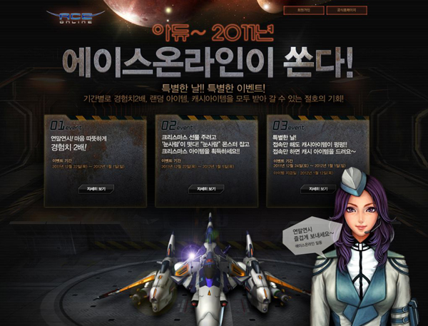 ...와이디온라인(대표 유현오)이 서비스하고 마상소프트(대표 강삼석)가 개발한 비행슈팅 RPG '에이스 온라인'에서 2011년을 마감하며 연말 이벤트를 진행한다. 이번 이벤트는 오늘부터 내년 1월 1일까지 게임을 즐기는 모든 유저들은 경험치 2배의 혜택을 받고, 크리스마스인 25일,