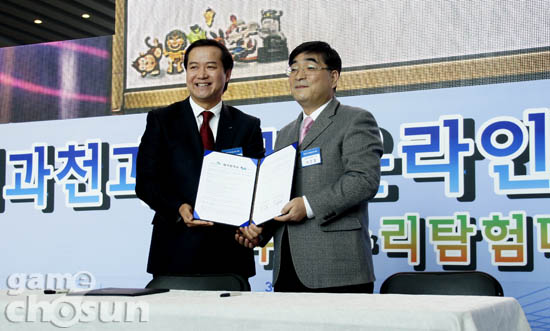 ...론칭된 '수리수리탐험대'는 수학에 게임 요소를 결합한 것으로 청소년들에게 학습동기와 흥미 유발, 창의력 개발 등에 큰 영향을 끼칠 것이라 전망했다. ▲ 두산동아 성낙양 대표(좌)와 국립과천과학관 최은철 관장(우) 이 게임은 초등수학 교육과정에 포함된 연산과 도형, 측정,