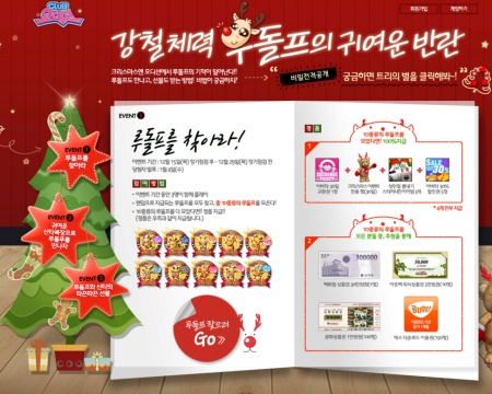 ... 먼저 게임 곳곳에서 등장하는 10종의 루돌프 스탬프를 모은 유저 전원에게는 아바타 30일 교환권과 전용펫, 아바타 30% 할인권, 크리스마스 분위기를 한껏 연출할 수 있는 스티커 사진 3매가 지급된다. 이 중 추첨을 통해서 백화점 상품권, 외식 상품권, 문화 상품권 등의