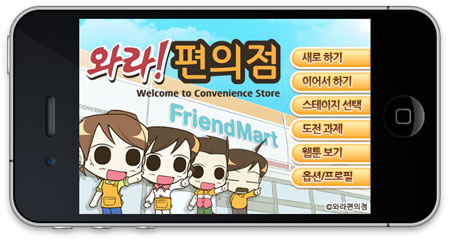 ... ▲ 아이폰용 타워디펜스게임으로 개발 중인 '와라! 편의점' '와라!편의점'은 지강민 작가가 네이버에 연재중인 인기 웹툰을 원작하고 타워디펜스 장르의 게임으로 개발 중이다. 원작에 등장하는 캐릭터들을 동원해 편의점을 공격해오는 적을 막는다는 내용으로 내년 초 아이폰 버전