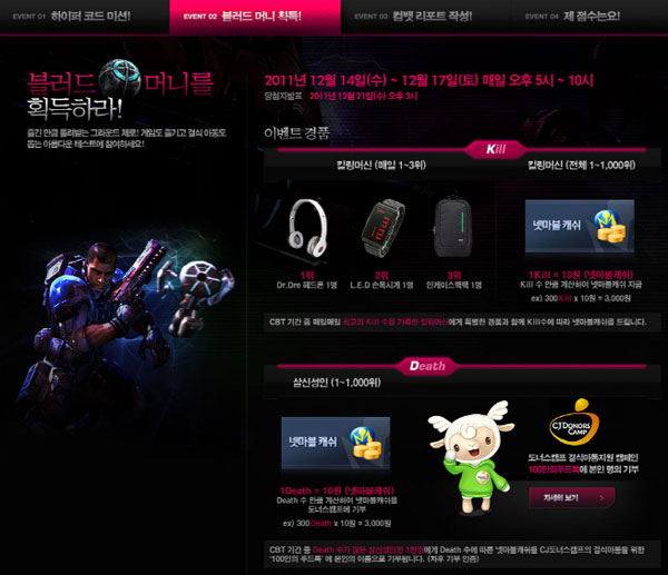 ... 팀 부문은 16명이 한 팀을 이루어 31일까지 참가 신청을 한 후 7일부터 시작되는 이벤트전을 시작으로 예선과 본선을 거쳐 최종 2팀을 뽑는 방식으로 진행된다. 본선 경기는 아프리카TV를 통해 실시간으로 생중계될예정이다. 개인, 팀 부문에 선정된 이용자와팀들은 4백만 원