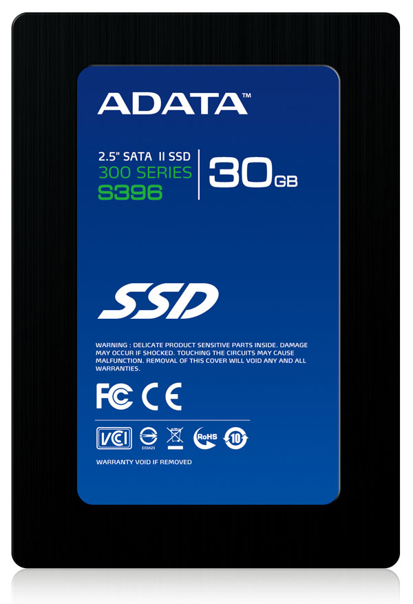 ... 에이데이타의 SSD S396는 최대 초당 280MB의 순차읽기 속도와 최대 초당 250MB의 순차쓰기 속도를 지원하는 보급형 제품으로 SATA 2(3Gb/s) 인터페이스를 지원한다. 이 제품은 30GB, 소비자 가격은 7~8만 원으로 출시되며, 구입 고객 모두 3년간의 보증
