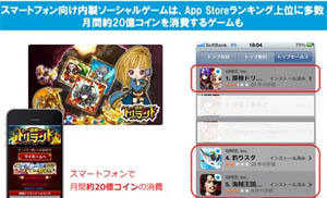 ... 이 게임은 매달 결제되는유료 아이템만 약 2,600만 달러(한화 약 300억원), 현재 일본 앱스토어 랭킹 4위를 차지할 정도로 큰 인기를 얻고 있다. 업계 관계자들은 스마트폰 게임의 상승세와 더불어 비빗도(ViViD)등 소셜게임에 힘입어 앞으로 지속적인 매출 증가를 달성