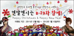 ... 회사측은 크리스마스에 홀로 'B-29'를 즐길 유저들을 위한 이벤트도 마련했다. 오는 24일, 25일 양일간 '크리스마스 기습 공격' 이벤트를 실시, '거점전'에 참여해 승리한 거점 군단에게 기본 능력이 뛰어난 장군을획득할 수 있는'특수 에픽 산타 서명서'를 지급한다.