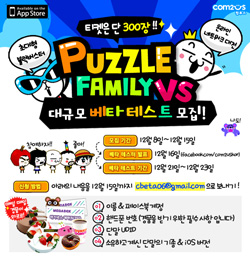 ... 유저간 실시간 대전 기능을 제공하고, 3D 그래픽을 활용해 귀여운 캐릭터의 움직임을 극대화했다. 컴투스는이달 21일부터 23일까지'퍼즐패밀리VS'의 베타 테스트를 진행할 계획으로, 오는 15일까지 총 300명의 테스터를 모집한다. 신청자는 실명과 페이스북 계정, 핸드폰 번호