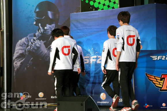 ... CJ는 1세트 공사장에서 속도전을 앞세워 KT를 손쉽게 격파한 뒤 2세트 피스호크에서 불리했던 경기를 연장전까지 이끌고 가 역전승을 거뒀다. CJ와 KT는 이전까지 각각 SK텔레콤T1에게 패하고 티빙에 승리를 거두는 비슷한 출발을 보였지만 이날 경기로 인해 CJ가 한 발