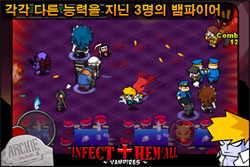 ...매직큐브(대표:하상석)와 에이큐시스템(대표 박준태)은 양사가공동 개발한 스마트폰 게임 애플리케이션 '인펙트뎀올:뱀파이어'를 2일 애플 앱스토어에출시했다고 밝혔다. '인펙트뎀올'은 좀비 캐릭터로 인간을전염시킨다는 역발상 요소가 특징인 게임으로, 이번 시리즈에서는 '뱀파이어'라는