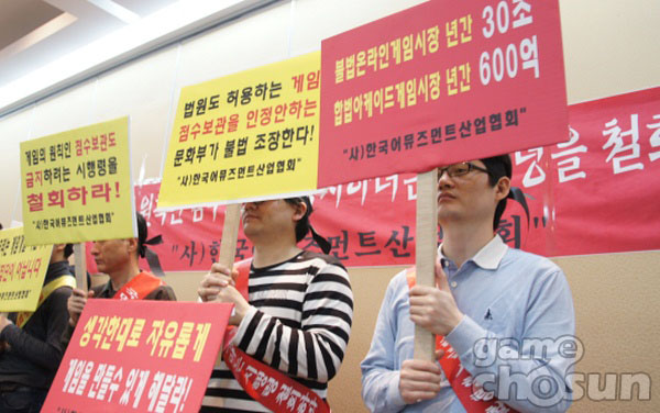 ... 업소용 게임(아케이드) 업계 관계자들이 입법예고된 게임법 개정안에 대해 반발하고 나섰다. 아케이드업계의 대표 단체인 한국어뮤즈먼트산업협회 회원 20여명은 30일 오후 삼성동 코엑스에서 열린 '게임산업진흥에 관한 법률 시행령 개정안' 공청회에 참석해 "게임의 원칙인 점수보관