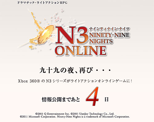 ... 25일 공개한 티저사이트에는 앞으로 4일 후 정보를 공개한다는 카운트다운 표시로 본격적인 게임 내용 공개를 예고하고 있다. 'N3온라인'은 기본 무료플레이에 부분유료화 방식으로 서비스 될 예정이며 일본 및 해외 서비스 일정은 미정이다. [정규필 기자 darkstalk