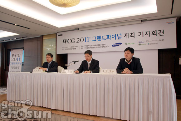 ... ▲ (왼쪽부터)삼성전자 김도경 부장,이수봉 사무관, 주성필 팀장 또한, WCG 2011 한국대표 선수로 워크래프트3 종목의 장재호 선수가 참석해 8년 만에 한국으로 돌아온 WCG 그랜드파이널에서의 한국팀 4년 연속 우승을 다짐했다. WCG 2011 그랜드파이널은 국내