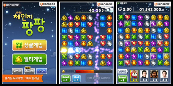 ... 최대 4인까지 함께 할 수 있도록 멀티플레이를 지원하며, 퍼즐모드, 타임어택, 클래식 등의 게임 모드가 지원된다. NHN 한게임 스마트폰게임사업그룹 채유라 그룹장은 "스마트폰에 최적화된 조작과 사운드, 아기자기한 디자인 등으로 스마트폰 이용자들에게 폭넓은 사랑을 받을 것"이