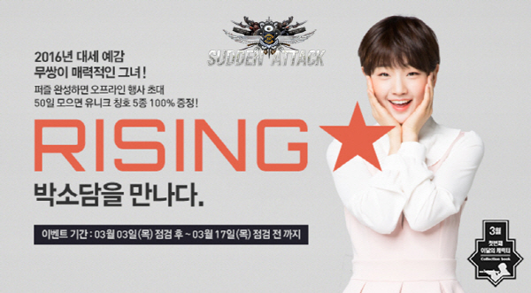 ... 퍼즐판을 완성한 모든 유저에게는 '소담 수류탄(100일)'을 선물한다. 이와 함께 '3월의 통합 이벤트'를 31일까지 실시, '서든어택 퍼즐 뽑기왕'이벤트를 통해 'Monkey Spanner Gold(영구제)' '대보름 수류탄(영구제)' 'C. Anaconda 청마(영구제)' 아