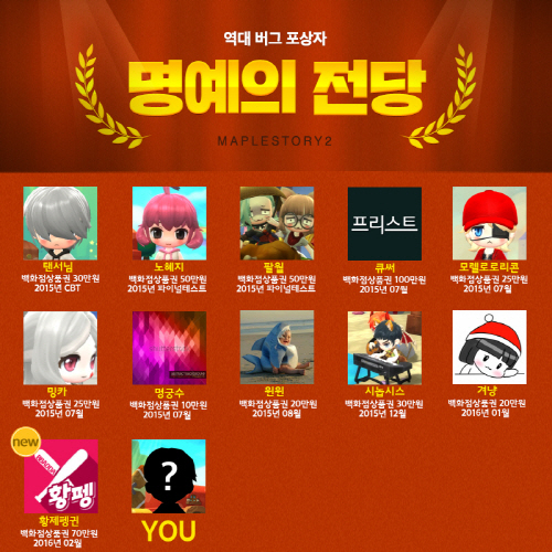 ... 실제, '메이플스토리2'에서는 지난 1년 동안 유저 제보를 통해 총 11차례에 걸쳐 게임 내 큰 영향을 미칠 수 있는 문제를 즉시 발견 및 예방할 수 있었다. 최근 버그 제보를 통해 11차 명예의 전당에 오른 아이디 '황제펭귄' 회원은 "현재 소속돼 있는 길드에서 3