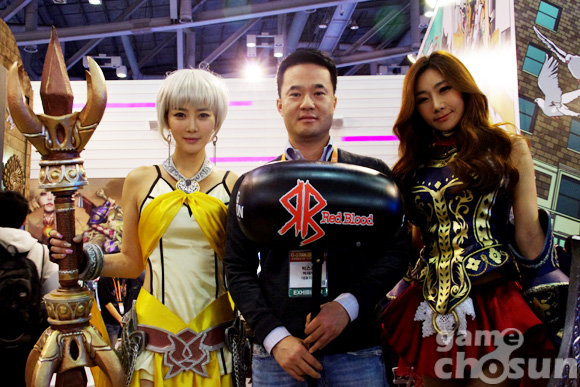 ... ▲ 부스걸과 함께 사진을 찍자는 빅스푼 박재우 대표(가운데) 특히, 이번 지스타에는 모바일 게임사 '컴투스'와 온라인 게임사 '빅스푼코퍼레이션(이하 빅스푼)'이 처음으로 참가해 눈길을 끌기도 했다. 그중 신작 MMORPG '레드블러드'와 레이싱 게임 '프리잭'을