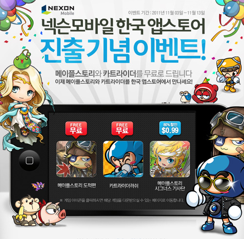 ... 한편, 넥슨모바일은 오는 13일까지 애플 국내 앱스토어를 통해 발매된 '메이플스토리 시그너스 기사단'과 '메이플스토리 도적편'을 각각 0. 99달러(약 1100원)과 무료로 할인된 가격에 다운로드 받을 수 있도록 이벤트를 진행중이다. 임종균 대표는 "이번 국내 게임 카테고리