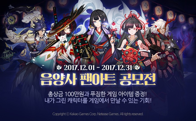 ...참가자 전원에게 300곡옥을 지급하고 공모전을 통해 선정된 창작 작품들은 실제 게임 속 로딩 이미지로 활용될 예정이다. 또한 입상한 작품에는 음양사 로딩 이미지 특전 외에도 상금과 곡옥, 패딩 등 보상을 제공한다. 카카오게임즈 측은 “한 해를 마무리 하며, 이용자 여러분의 깊은