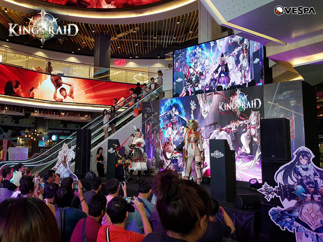 ... 이 게임은 한국을 비롯해 동남아, 북미, 유럽 등 세계 각지에 서비스되고 있다. 현지 출시 1주년을 기념해 방콕에 위치한 쇼핑몰 Show DC에서 진행된 이번 행사에는 약 200명 이용자가 참석했다. 현장에는 '킹스레이드' 시연존이 마련됐으며 각종 이벤트와 코스튬 플레이 행사가